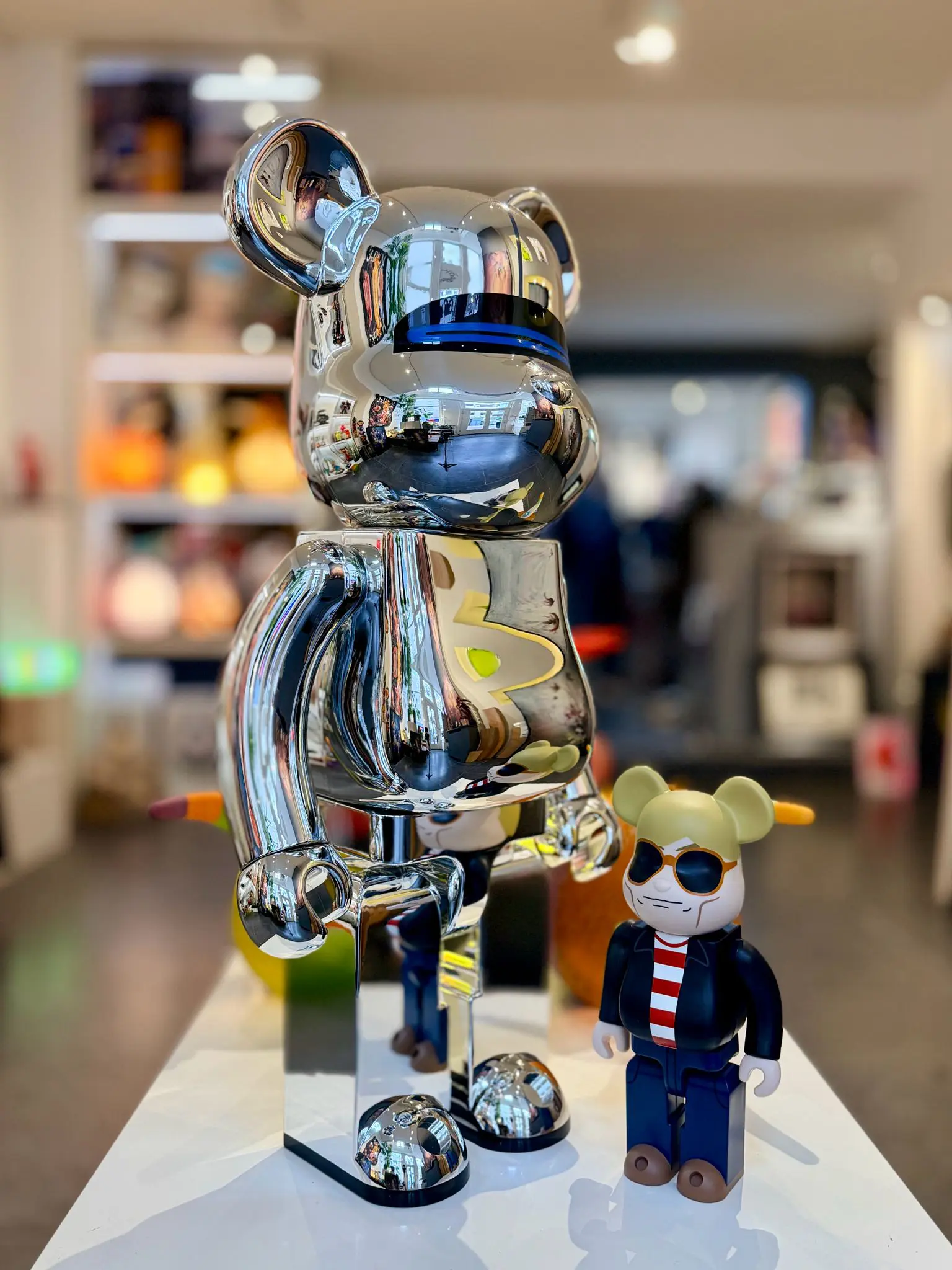 The 1000% Bearbrick – Hajime Sorayama Silver Robot (Lights Edition) stands at approximately 28 cm tall and is crafted with meticulous attention to detail. This edition features a sleek silver finish, capturing the essence of Sorayama’s signature style. What sets this Bearbrick apart is the light inside that illuminates the eyes, adding an extra layer of futuristic allure to the design.