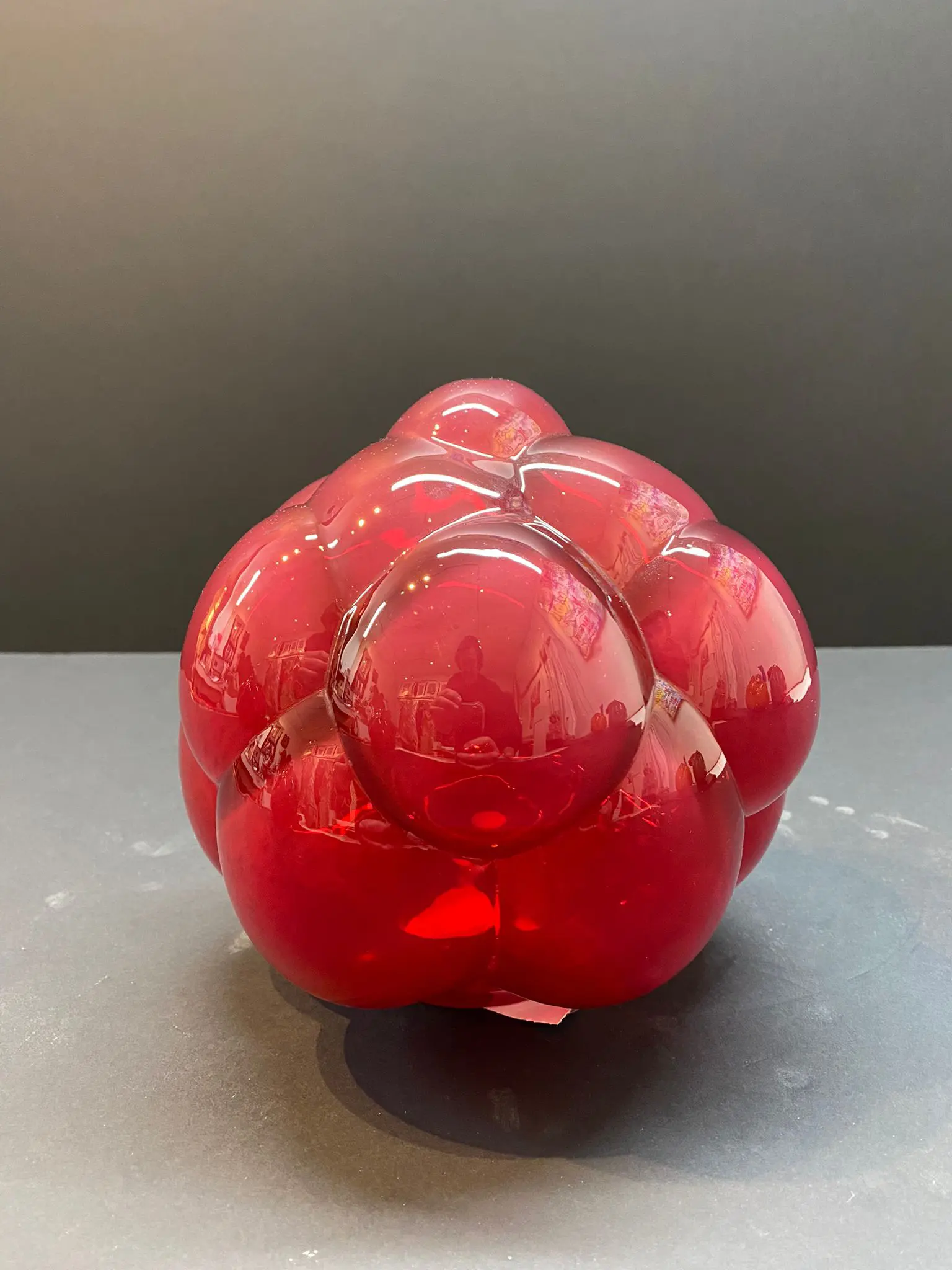 Ellen Ehk Åkesson is a Swedish glass artist who tells stories of the mysterious forest through her art glass, such as Berry Tales – a bubbling, bulbous berry plucked directly from the woodlands in her mind. The object in amber is handmade, with a shiny finish, at Kosta Glassworks in Sweden and is part of the Kosta Boda Artist Collection.