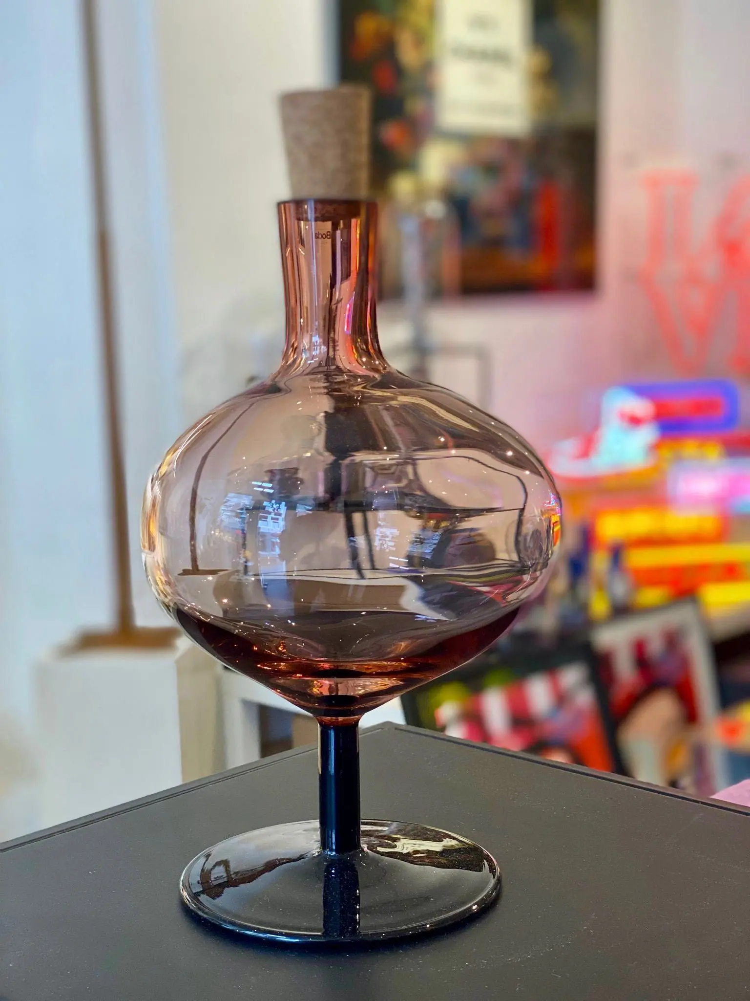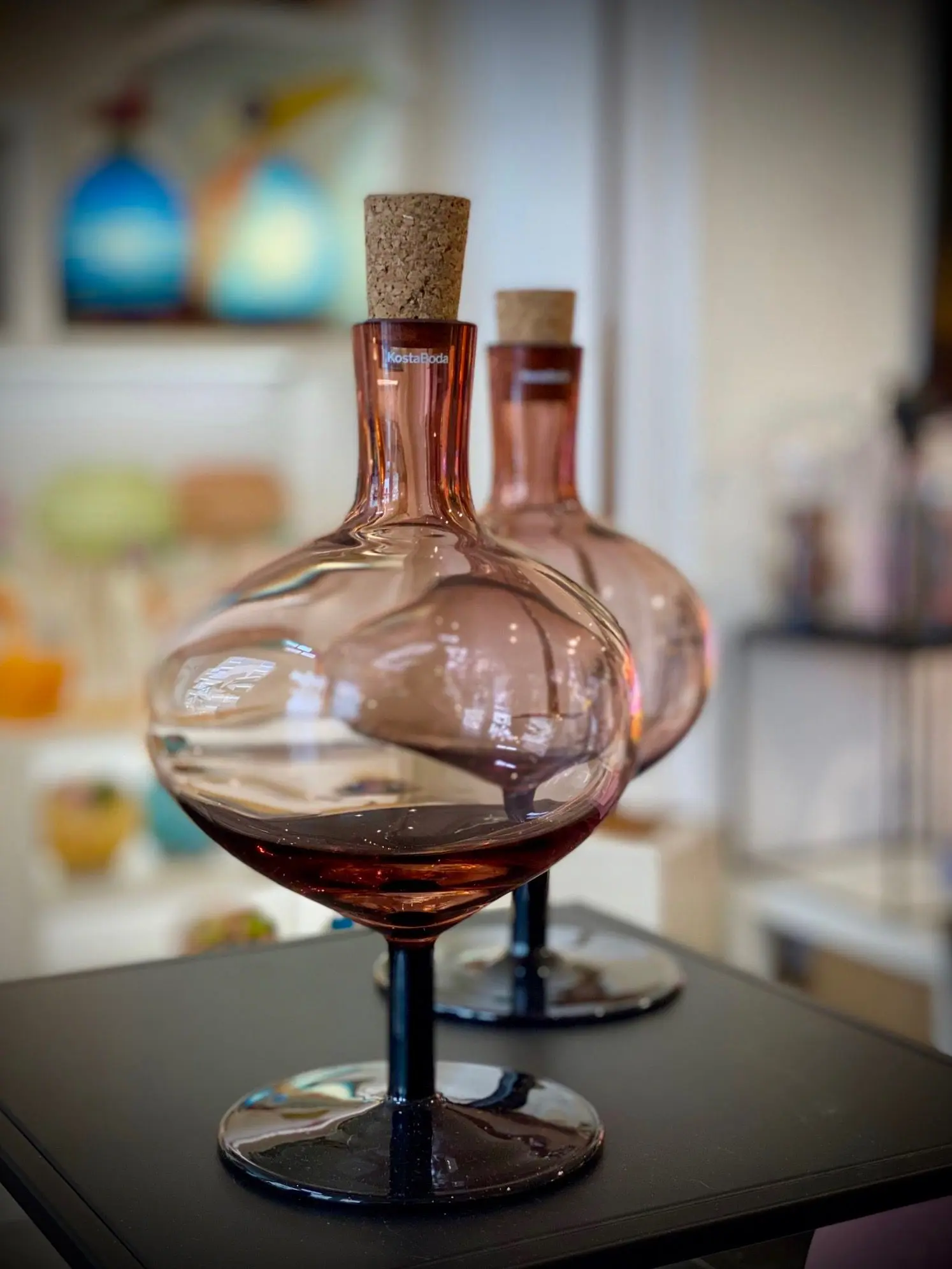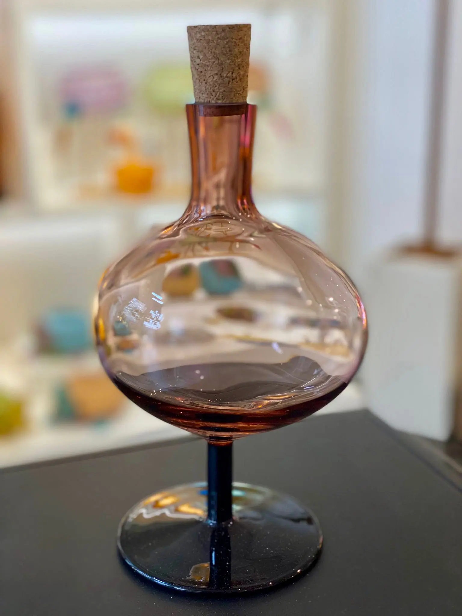 Bod resembles a small bubble frozen in time. The colorful bottle is a decorative piece of art that will capture the play of light in any home. At the same time the cork bears witness to the functionality; let your ideas spill into reality and fill its small, colorful bubble with whatever you want. Design by Matti and Simon Klenell.