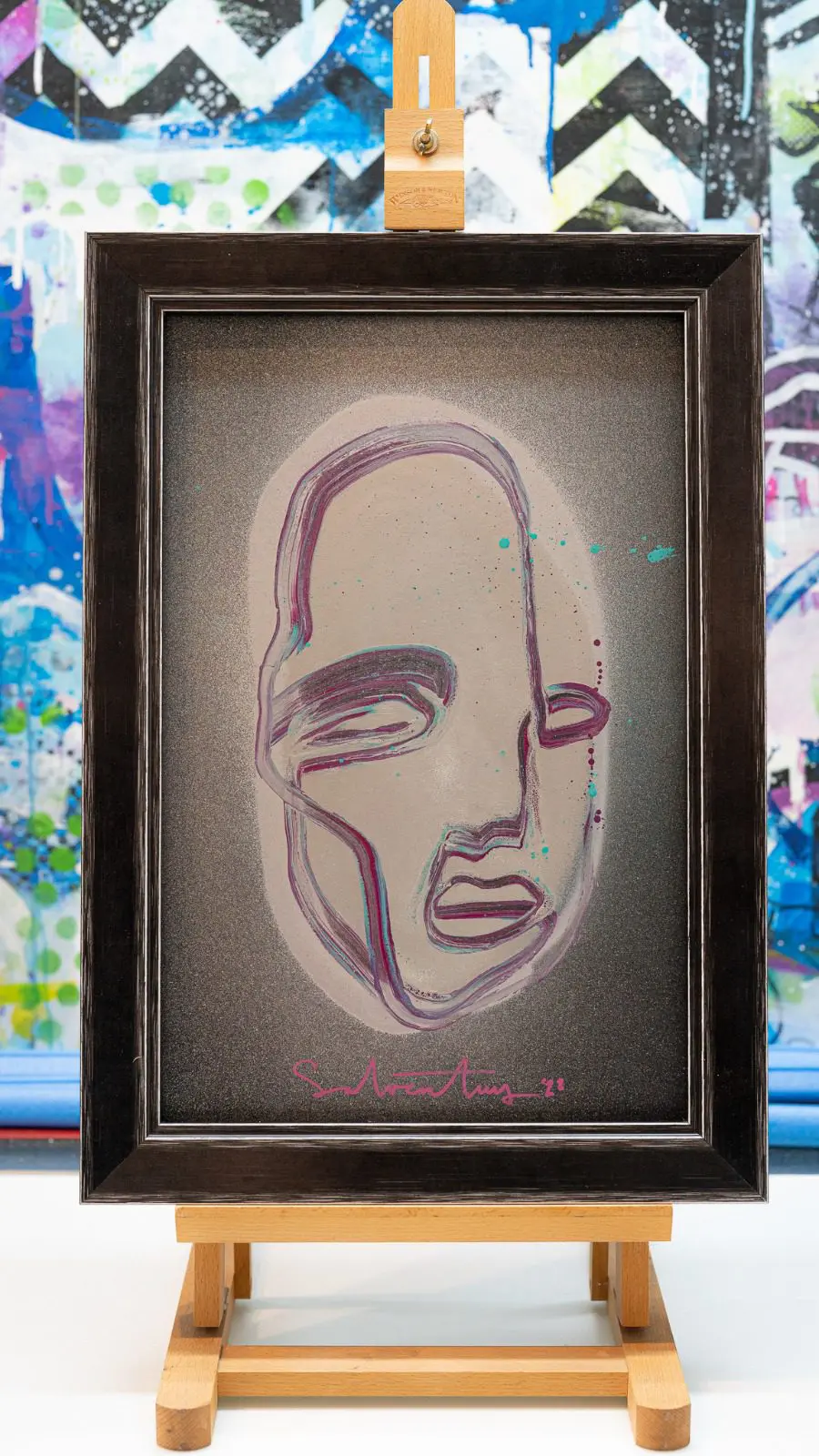 Origineel werk op paneel met maatlijst en museumglas