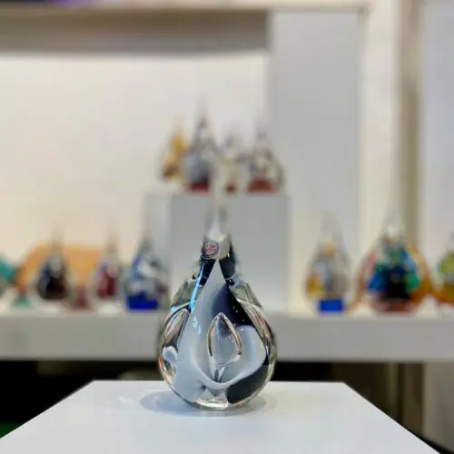Deze kristallen druppel is ambachtelijk vervaardigd door de meester glasblazers van glasdesign studio Ozzaro Collection. Er is gebruik gemaakt van Boheems kristal. Dit is een kristalsoort van zeer hoogwaardige kwaliteit, wat een unieke sprankeling bezit en uiterst zuiver is.