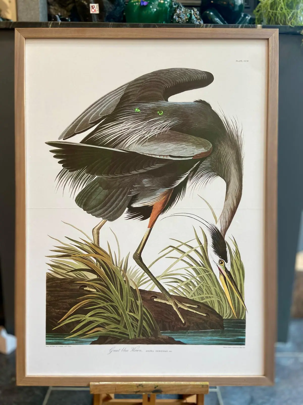In gelijst met houten lijst en museumglas.