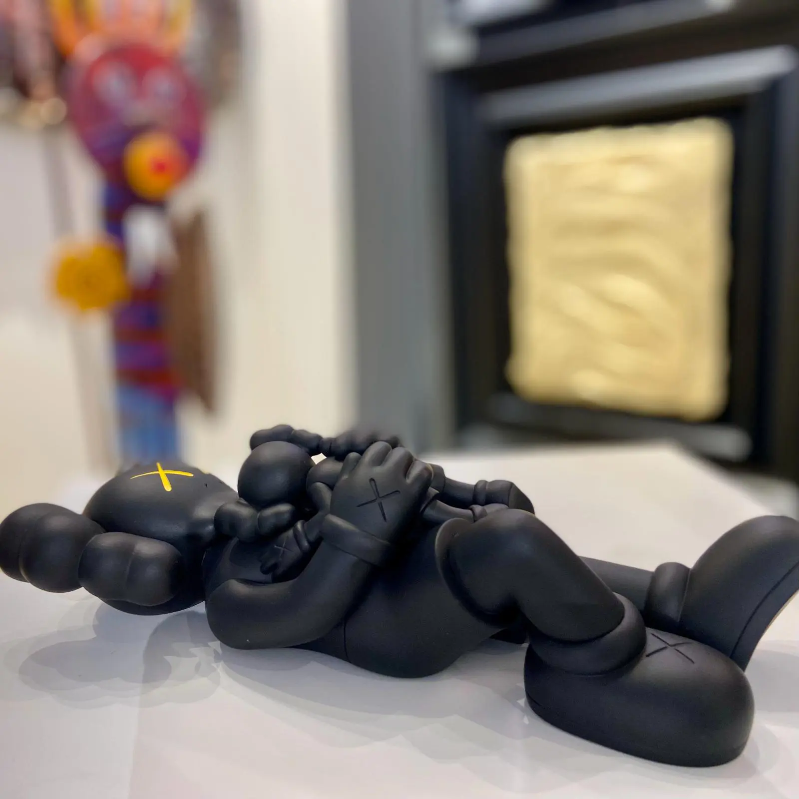 The classic KAWS Companions are lying on their back holding a smaller companion in their arms, reclined and in embrace. In celebration of the highly-anticipated event Brian Donelly, known as KAWS, released this Holiday Singapore Figure replica. “In the first Holiday project (on Seoul’s Seokchon Lake), the figure was reclining in water looking straight up. I was trying to think of the most relaxed situation I could possibly be in and I imagined swimming and just staring up into the sky.” – Brian Donelly