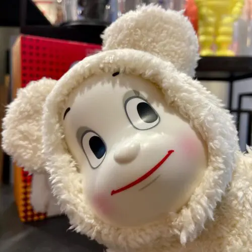 This white figure is a return of one of the most treasured KAWS vinyl figures: the Chum character, which originally debuted in 2002. Here the character is showed bent over in a saddened state.