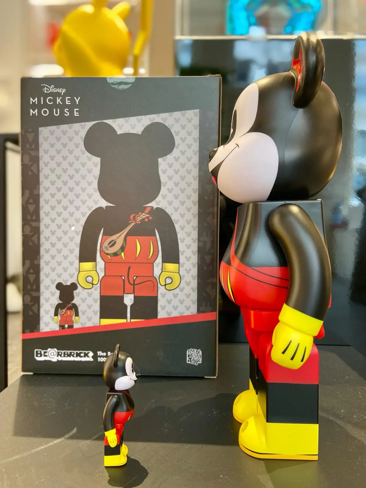 This is the 400% & 100% Bearbrick Set – Mickey Mouse (The Bard) by Medicom Toys.