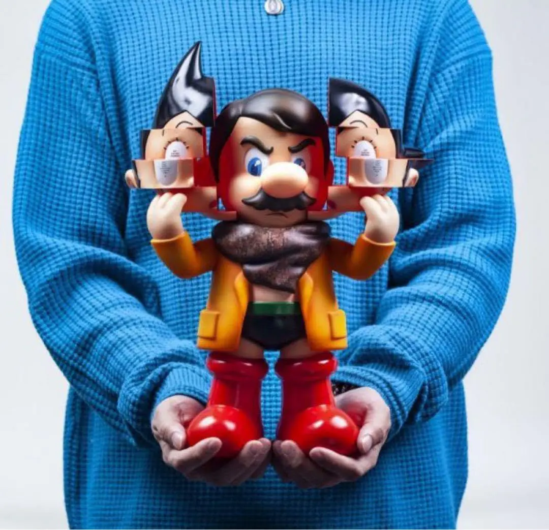 Fools Paradise’s Super Recall vinyl art toy just might be its most visually impressive piece so far. Inspired by Total Recall, the figure recreates the scene in which Quaid removes his malfunctioning robotic mask as he tries to sneak into Mars. In typical Fools fashion, the mask is of Astro Boy and Quad is in fact… Mario (hence ‘Super’ in the title). For good measure, Kuato—the mutant behind the Mars resistance—is scrawled graffiti style on the side of the figure’s boot.