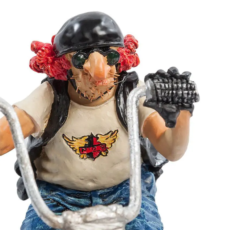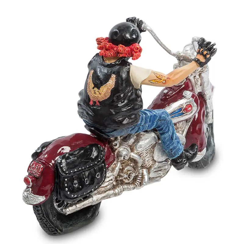 Beeld uit de serie The Vehicles van Guillermo Forchino, een stoere, in leer gehulde man op een motor. Leuk als cadeau, voor op het werk en natuurlijk gewoon voor in huis.