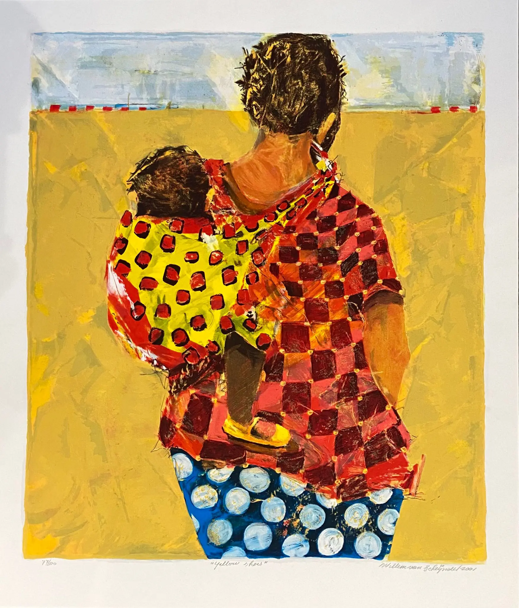 Zeefdruk op handgeschept papier.